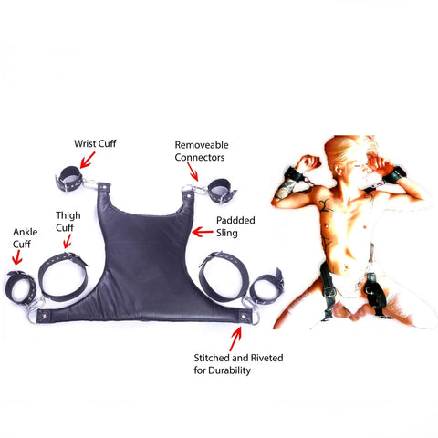 Wrist Cuffs, Ankle Cuffs, Thigh Cuffs and Steel Connectors Included.