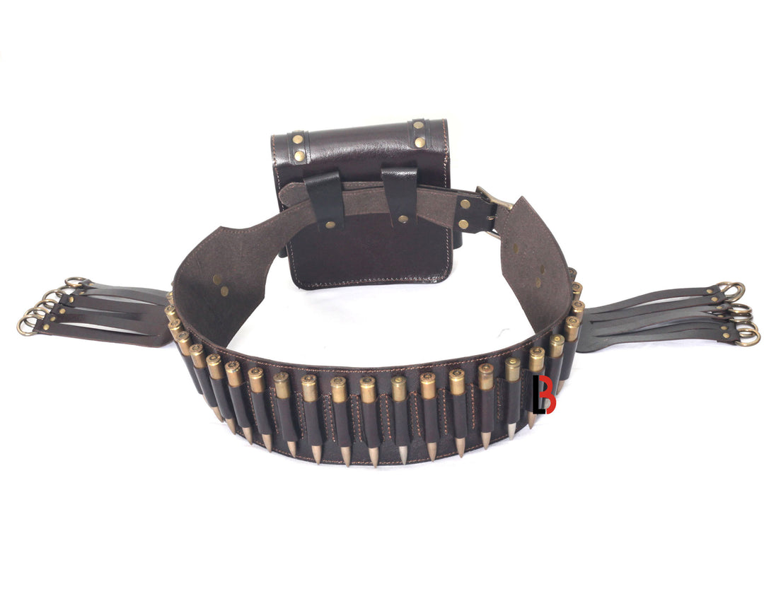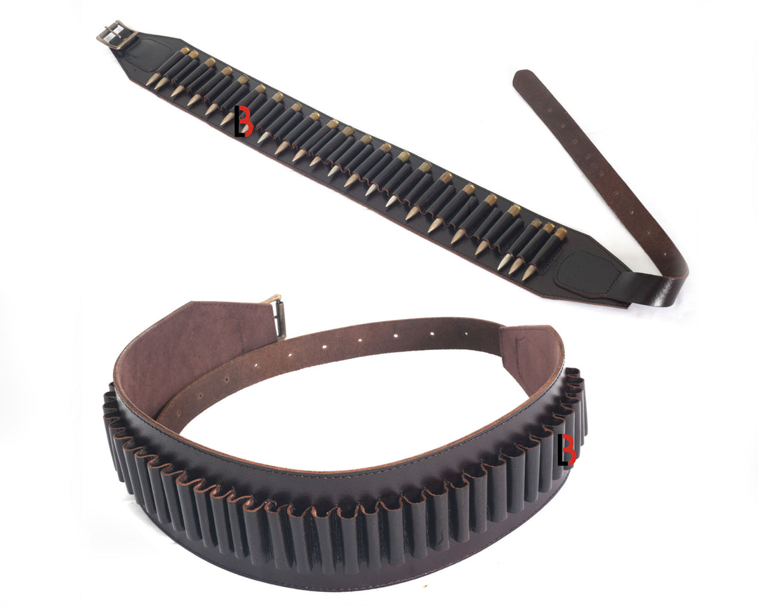 Real Leather Rifle Cartridge Bandolier Belt - Ammo Holder For Guns - Pouch Belt