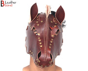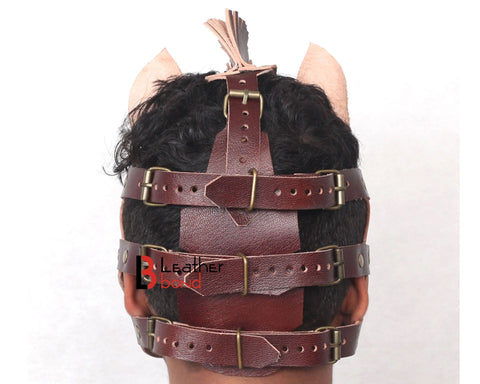 Genuine Cowhide Leather Horse Mask Hood Costume Reenactment Gear Halloween Mask Handmade Leather Bond