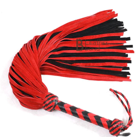 β€οΈπŸ–€ 75 Falls Real Genuine Cowhide Suede Leather Flogger – Red & Black Heavy Duty Thuddy Whip - Leather Bond