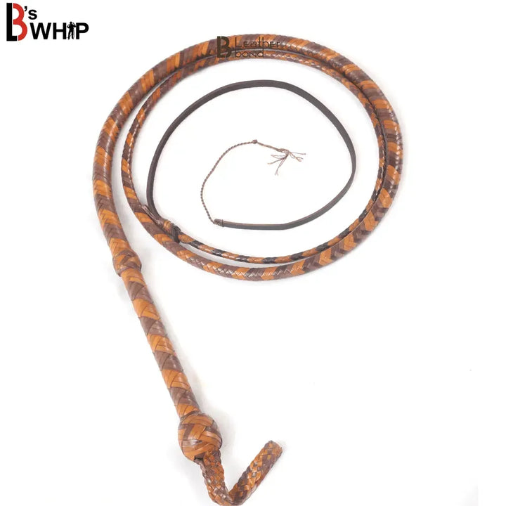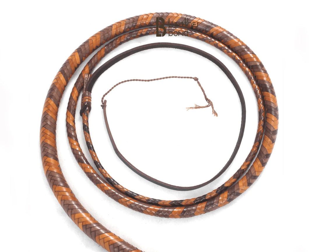 Bull Whip 6, 8, 10, 12, 14 & 16 Feet long 16 Strands Kangaroo Hide Leather Equestrian Bullwhip Leather Belly and Bolster Inside, Indiana Jones Tan Brown - Leather Bond