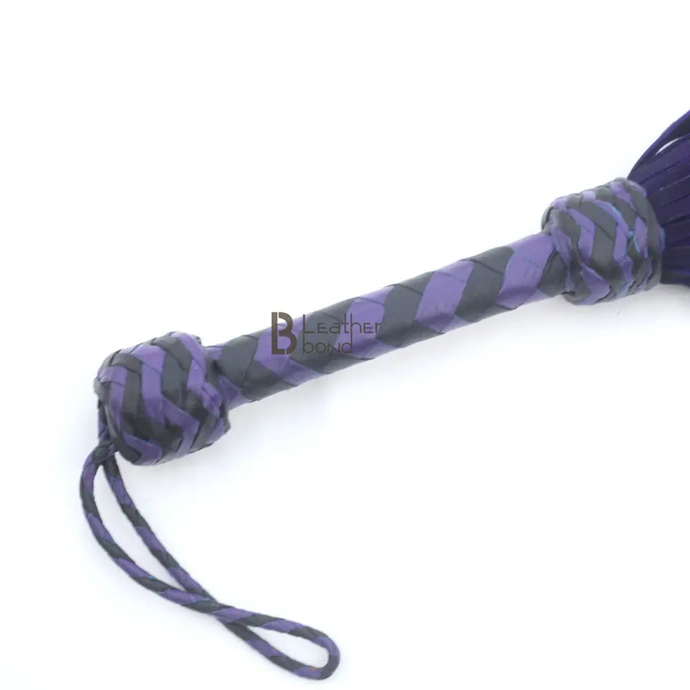 ππ€ Real Genuine Cow Hide Suede Leather Flogger β 75 Falls Purple & Black Heavy Duty Thuddy Whip