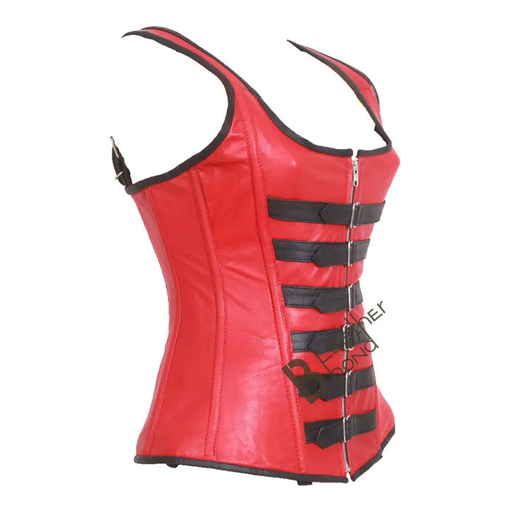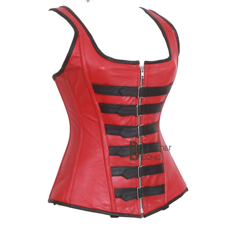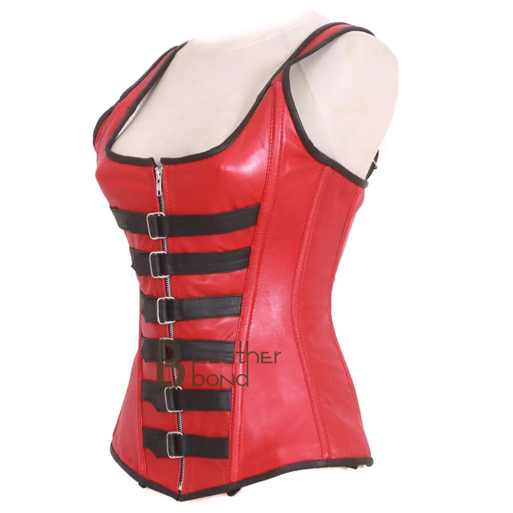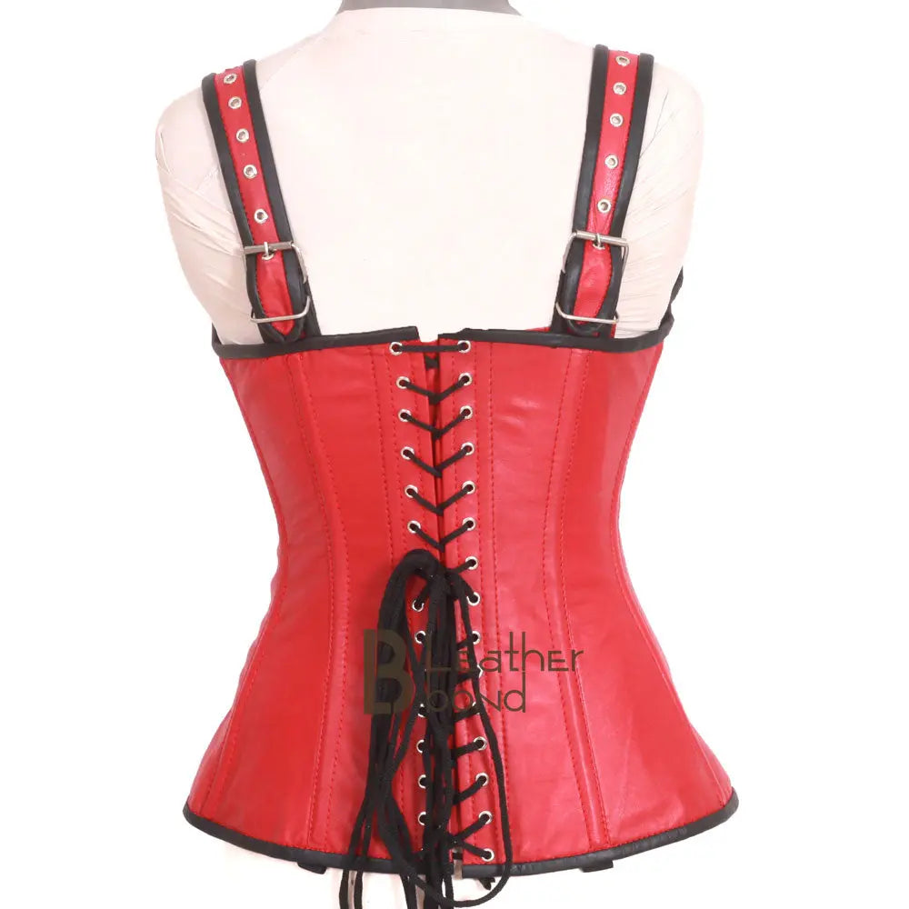 Genuine Real Sheep Leather & Stainless Steel Spiral Bones Over Bust Corset Red