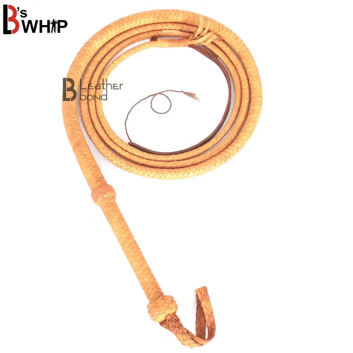 Indiana Jones Style Bull Whip 4, 6, 8 & 10 Feet Long 8 Plaits Real Tan Cowhide Leather Bullwhip - Leather Bond