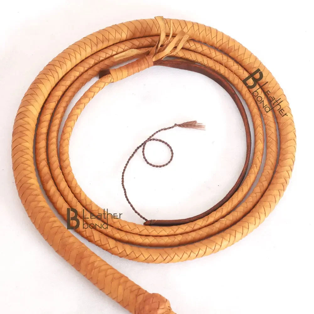 • These tan leather bullwhips are ideal for both beginners and experienced handlers.