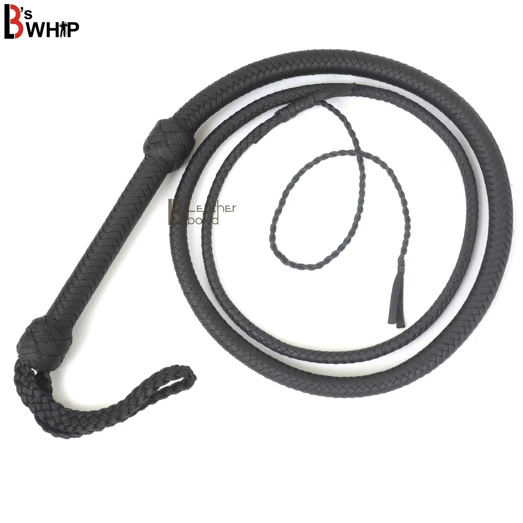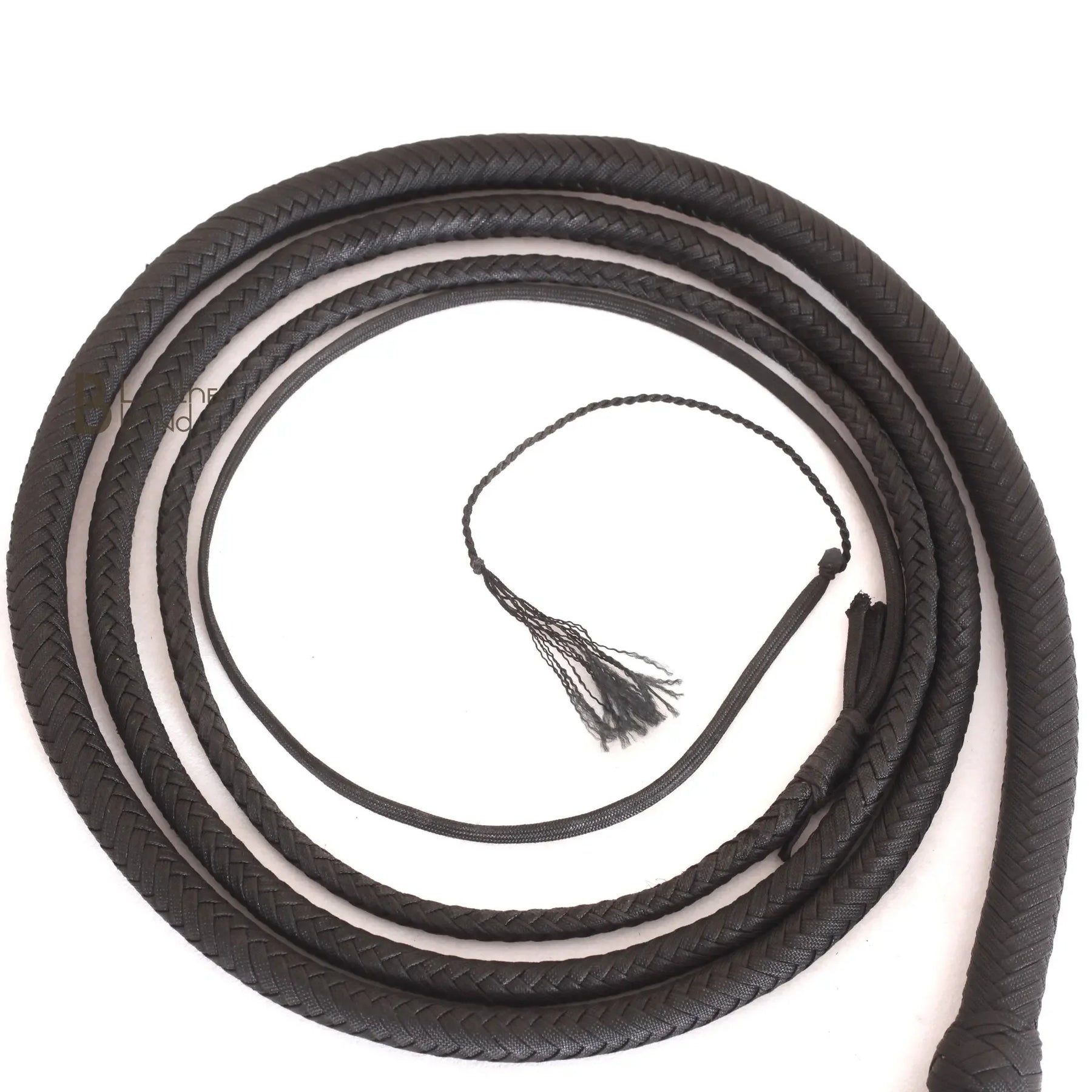 Indiana Jones Style Whip 06 to 16 Feet 12 Strands Bullwhip Black Para Cord Nylon Bull Whip with Leather Plaited Bellies