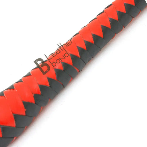 Real Cow hide Leather Braiding Riding Crop Whip Red & Black Dragon Tail inside Fiber stick Leather Bond
