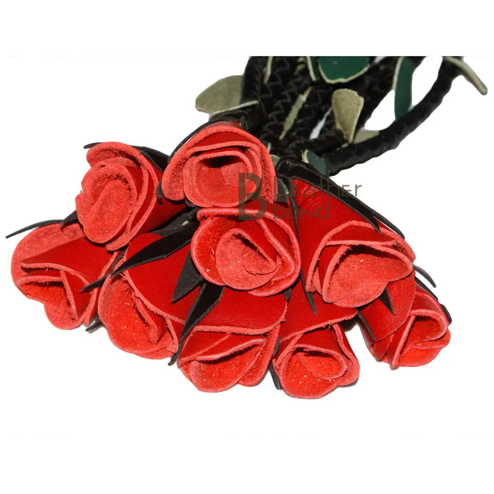 Embrace the exquisite craftsmanship of our Real Genuine Cow Hide Leather Flogger, a perfect blend of traditional design and sensual innovation. This flogger isn't just a tool—it's an experience, featuring beautifully handcrafted red roses and robust green petals on each of its heavy-duty falls.