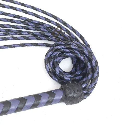 Real Genuine Cow Hide Leather Flogger Cat O Nine Braided Falls Purple & Black