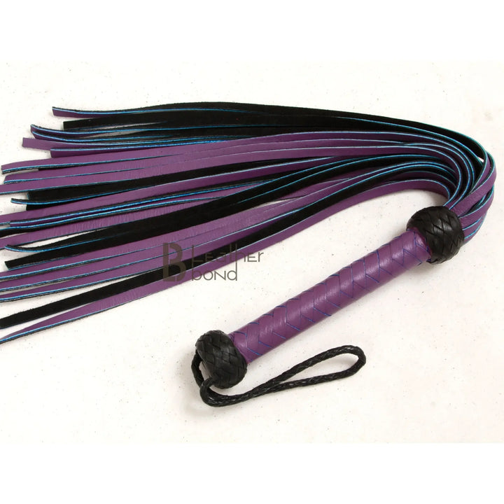 Real Cowhide Leather Flogger Whip 25 Falls Purple & Black
