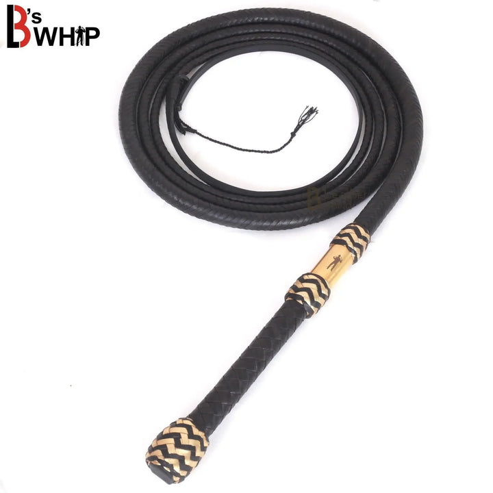 Bull Whip 6, 8, 10, 12, 14 & 16 Feet long 16 Strands Black Kangaroo Hide Leather Equestrian Bullwhip Leather inside Construction