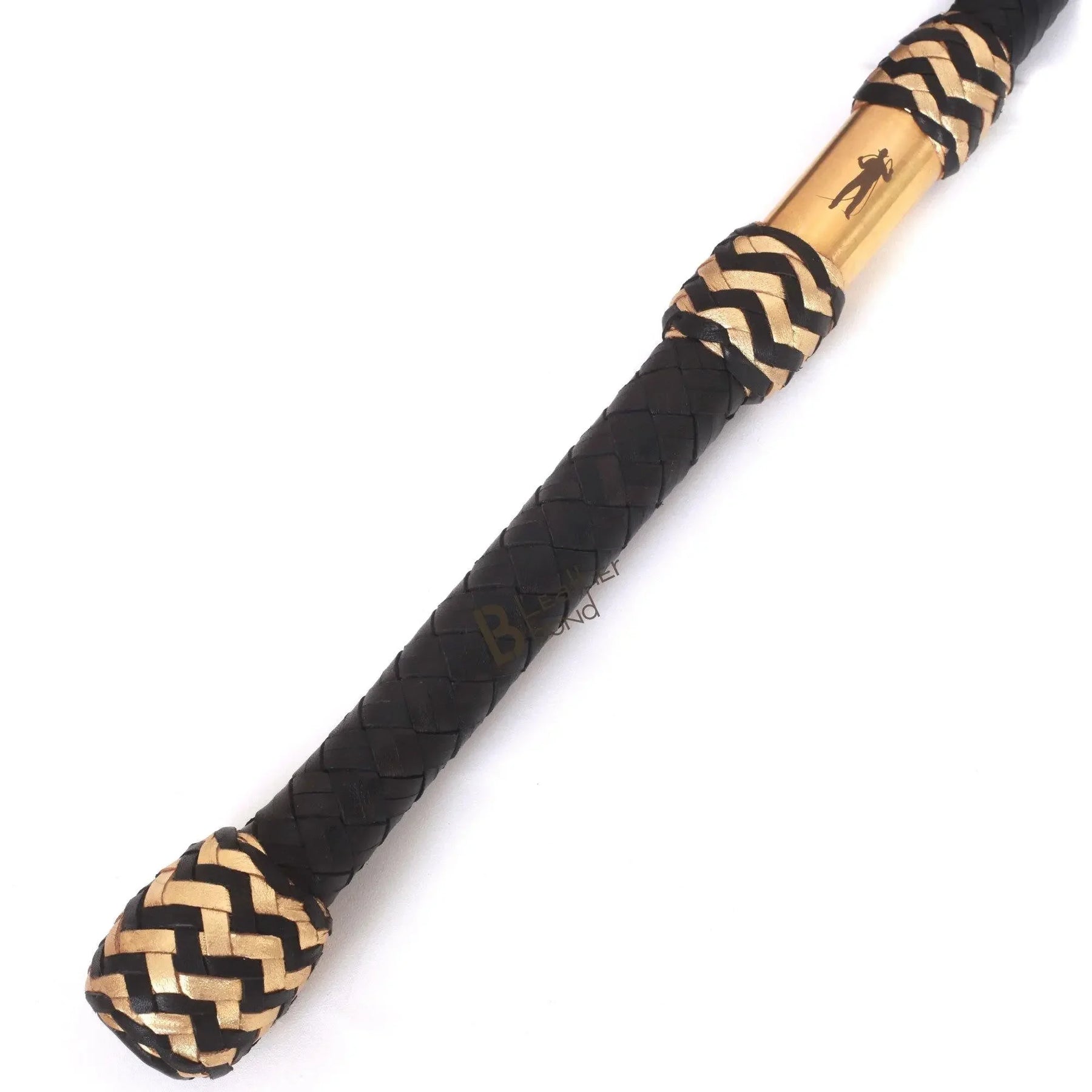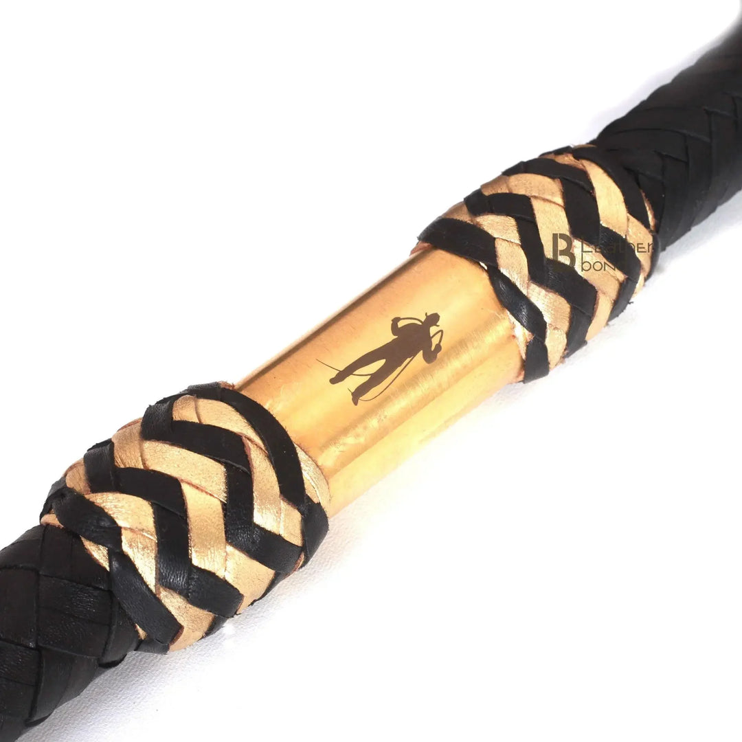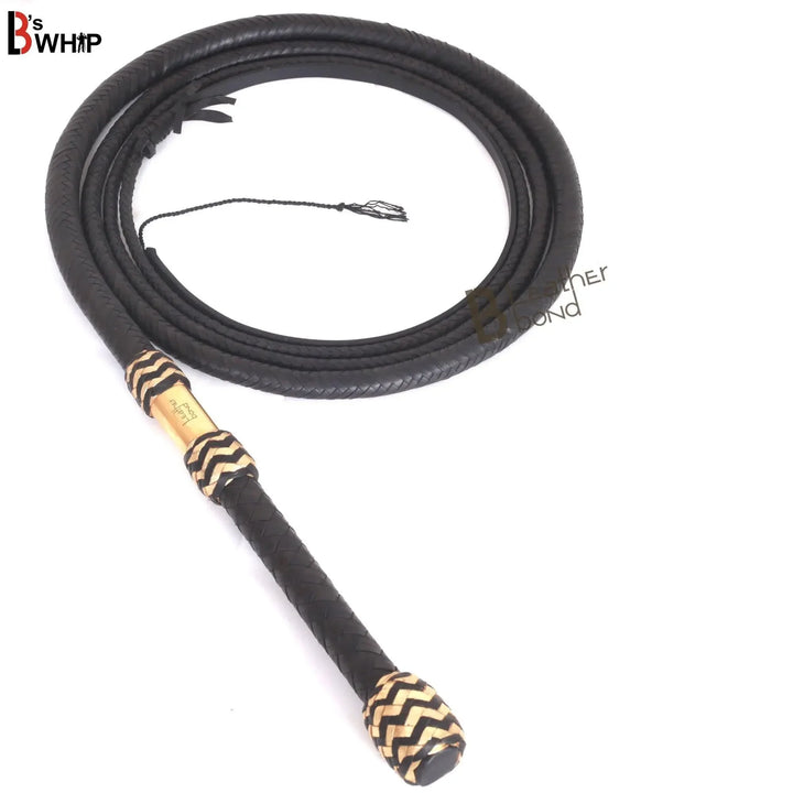 Target Bullwhip in Black with Gold Accents. It has a 2 inches gold ferrule.