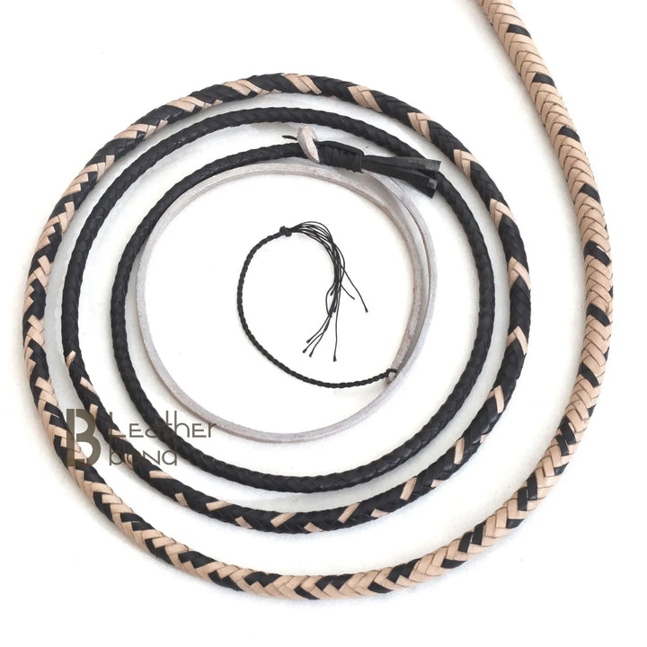 Indiana Jones Bull Whip 6, 8, 10, 12, 14 & 16 Feet long 16 Strands Kangaroo Hide Leather Equestrian Bullwhip Leather Plaited Bellies - Leather Bond
