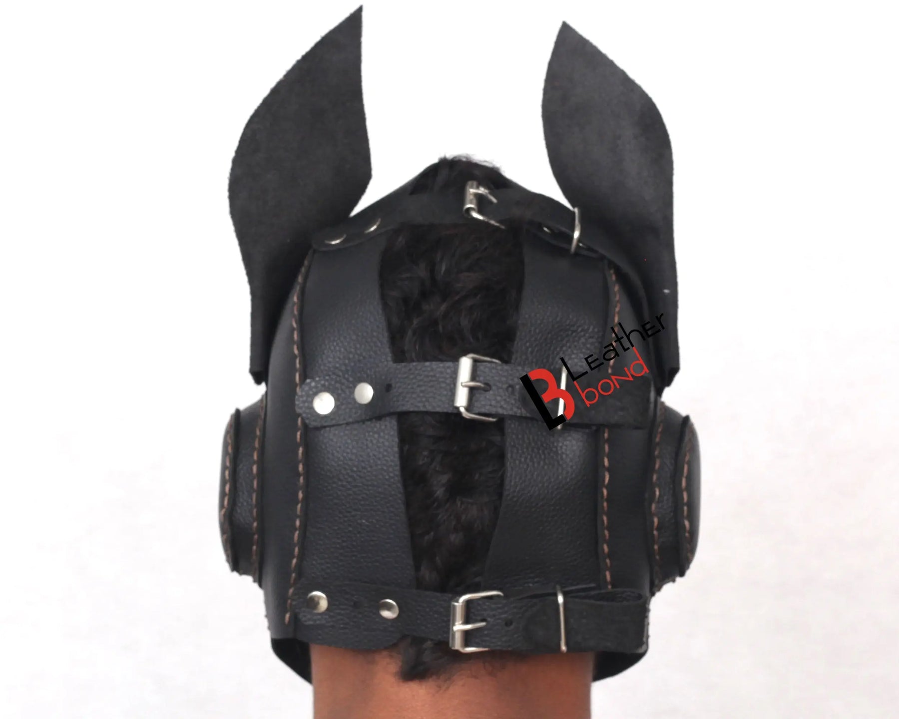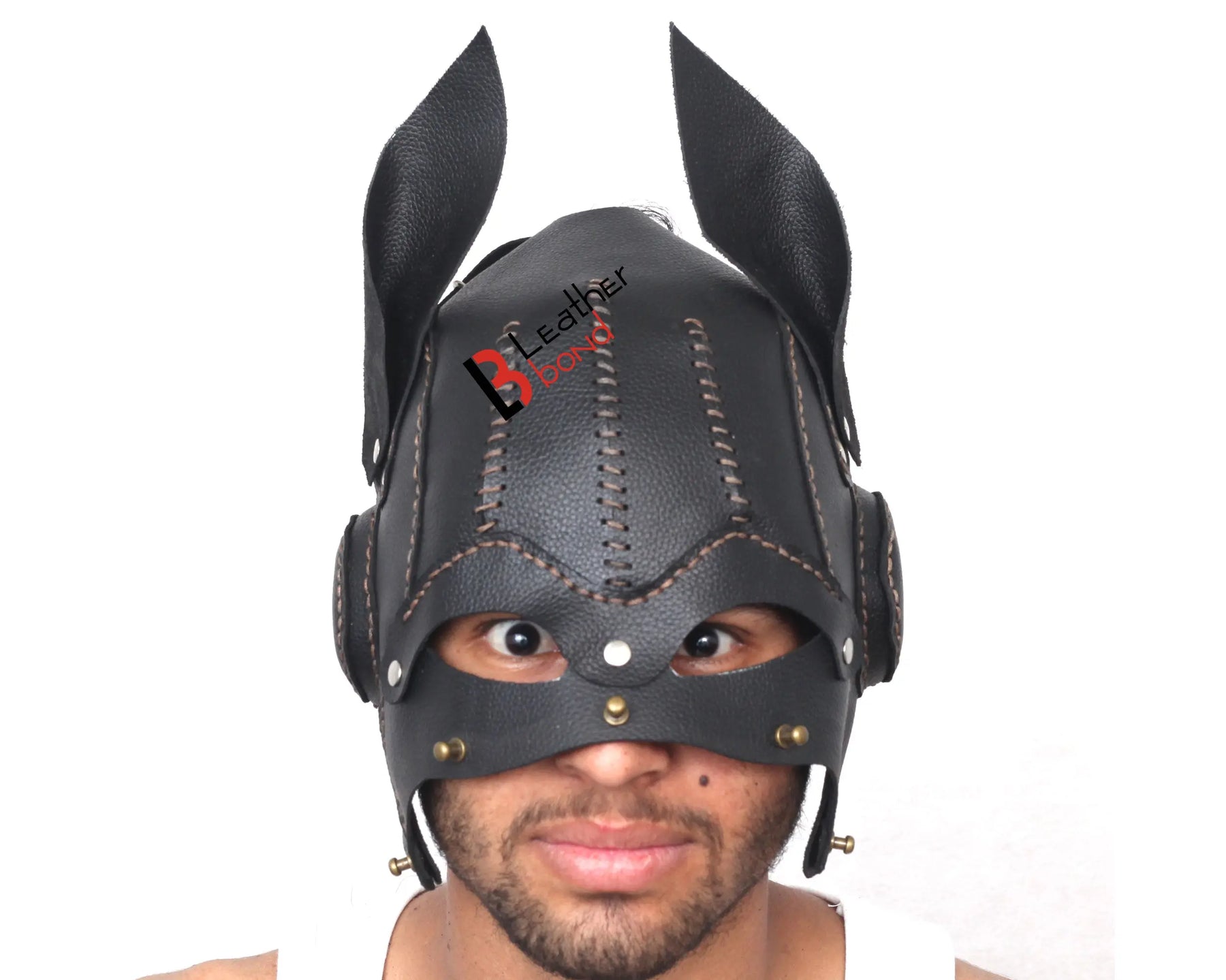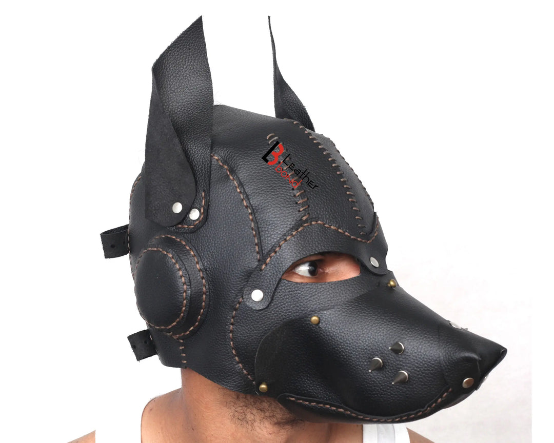 Cowhide Leather Puppy Dog Mask Hood Costume Reenactment Gear Puppy or Pet play Mask Handmade