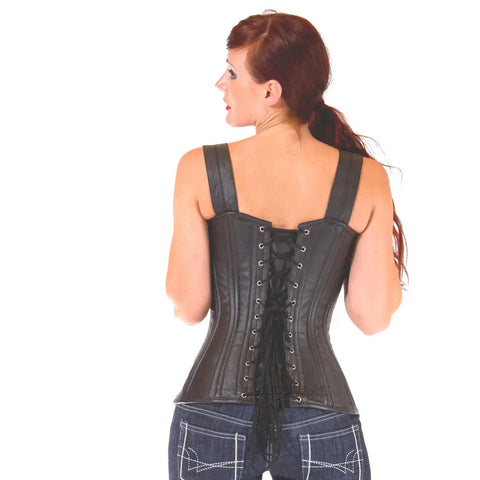 Genuine Real Sheep Leather & Stainless Steel Spiral Bones Over Bust Corset Black