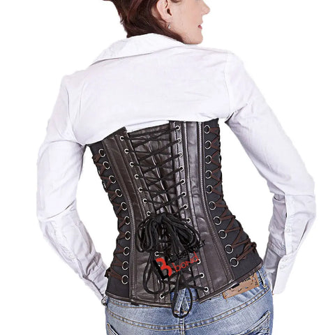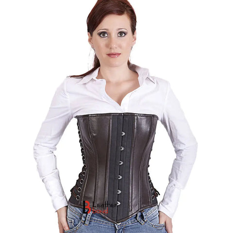 Genuine Real Sheep Leather & Stainless Steel Spiral Bones Over Bust Corset Brown Black