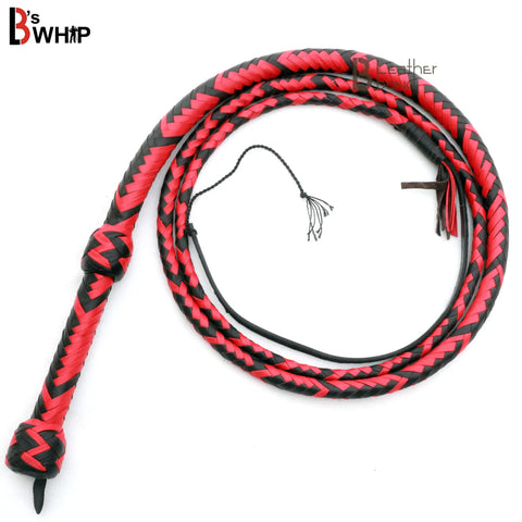 Red & Black Leather Bullwhip 6ft & 8ft – 16 Plait Handmade Real Cowhide Rope Core Whip