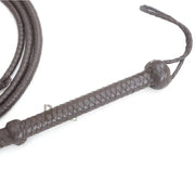 Master the art of whip cracking with our Indiana Jones style bullwhips. This is fully handmade whip available in 6-foot, 8 foot,c10 foot and 12 foot lengths. This dark bullwhip is designed for a cosplay, collection, equestrian sports or whip cracking enthusiasm. It’s not just a costume accessory. It’s a fully functional leather bull whip for performance in whip cracking hobby with a loud crack. If you’ve been looking for a premium bullwhip for sale, Leather Bond brings you quality you can trust.