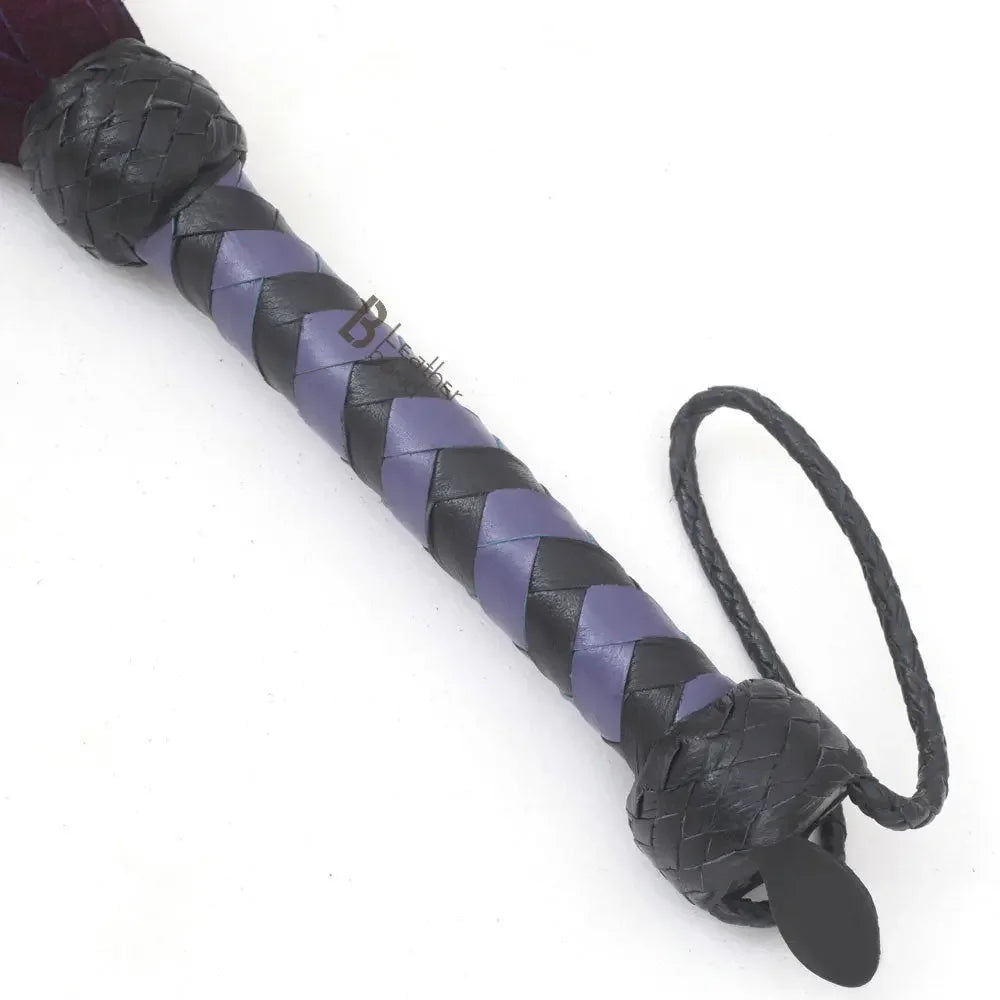 Real Genuine Cow Hide Suede Leather Flogger 25 Falls Purple & Black Soft Suede Leather - Leather Bond
