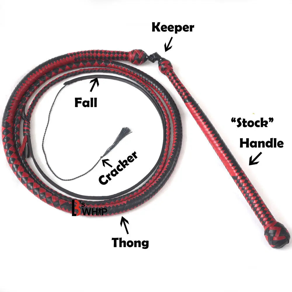 - The length of an Australian stock whip is measured by the length of the thong. For instance, a whip marketed as 4 feet long would have a 4 feet long thong. The measurement does not include the length of the handle, stock, fall and cracker.